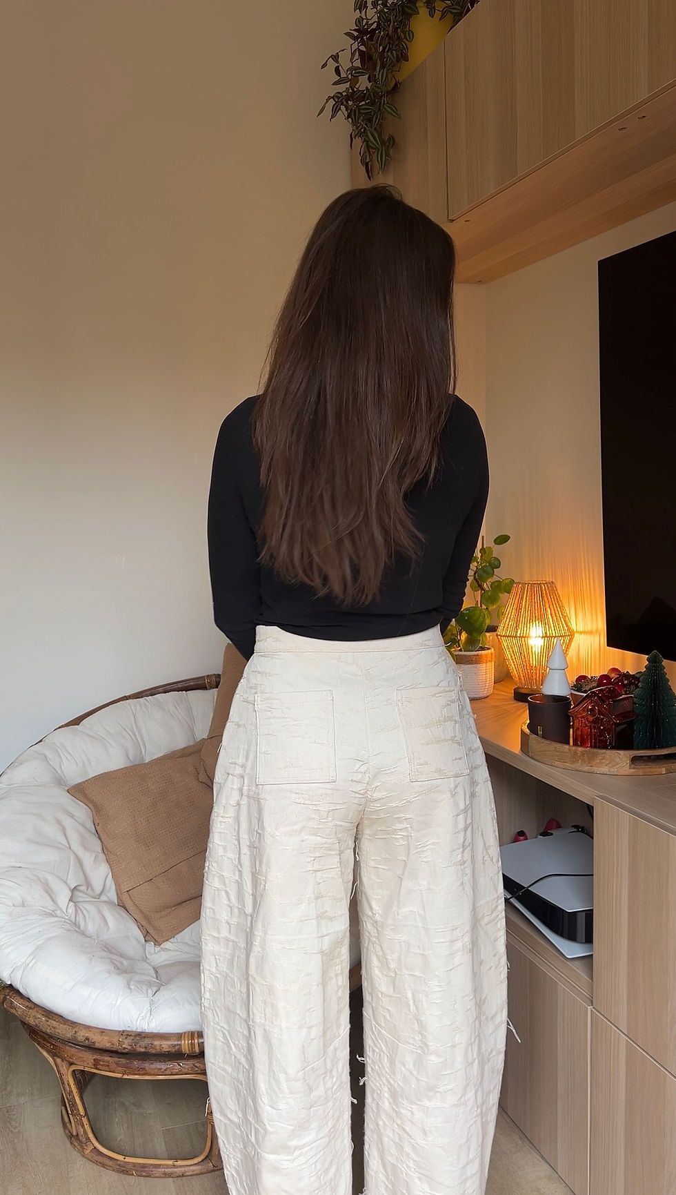 Dans sa version salopette pantalon, portez Aurélie avec un tee-shirt un peu loose ou bien un col roulé fin, avec des bottines à talons au pied.